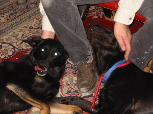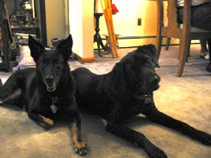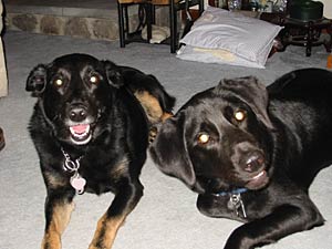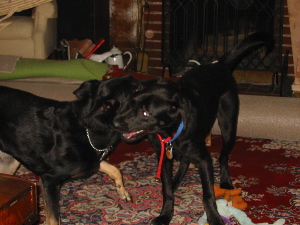 Bailey is a great pal of Casey's. They are cousins, since Bailey is a member or Rich's sister Eileen's family. Family get-togethers find the humans generally eating a meal, and the canines "ripping it up" in the den. It can be quite amusing.